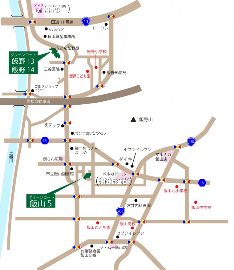 | 交通 | 西分バス停870m~1,020m、JR丸亀駅4,100m~4,250m |