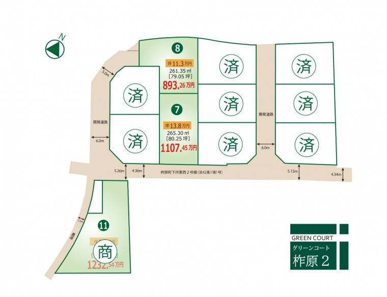 田(①~⑩号地:造成完了後宅地に変更、⑪号地:建物上棟後宅地に変更) |
