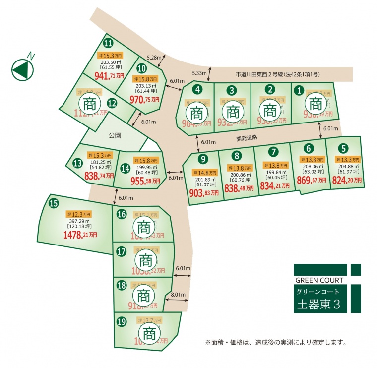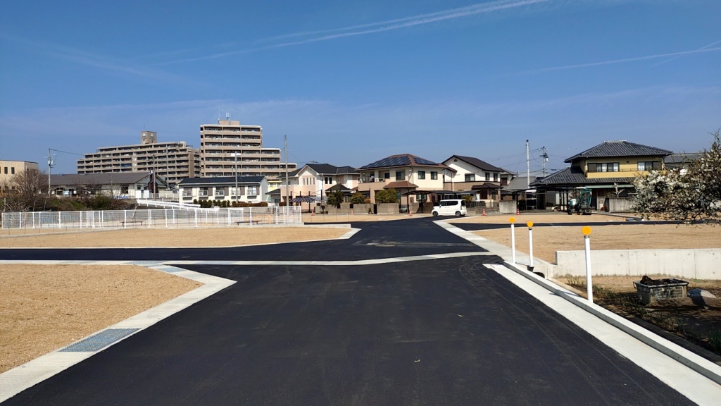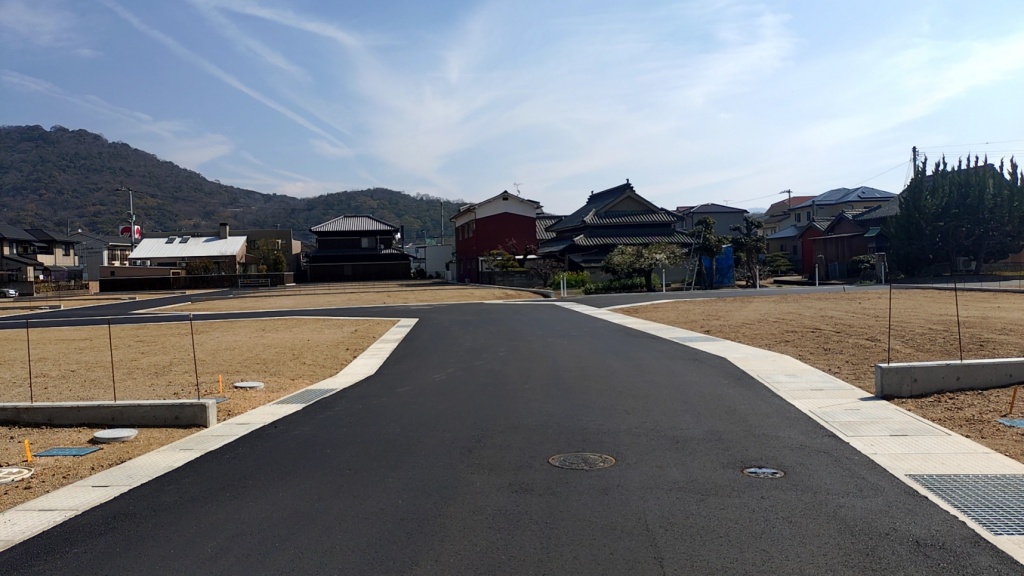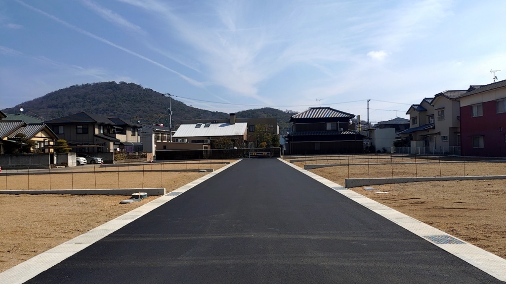 分譲地内開発道路は、丸亀市に寄付採納予定 |