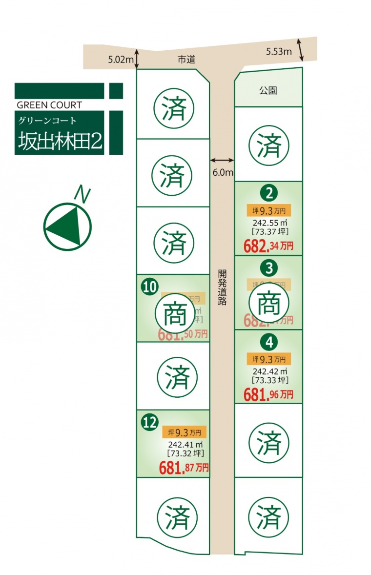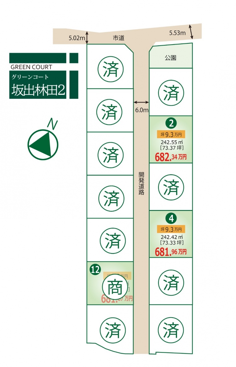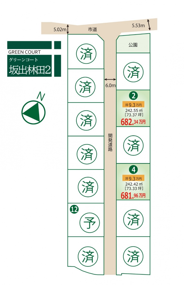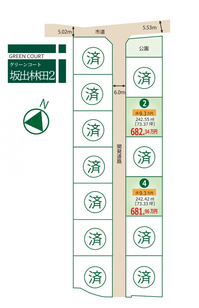 白峰中学校すぐ南 全13区画 全区画70坪以上